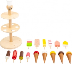 - Houten ijshouder met een selectie ijs-onderdelen (bolletjes en ijsjes op een stokje)