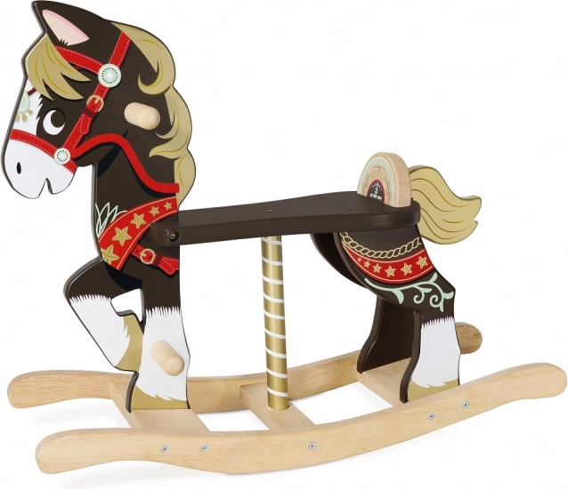Geef kinderen tijdloos plezier met het houten hobbelpaard uit de Petilou-collectie. De robuuste constructie, gladde randen, steunhandgrepen en het comfortabele zadel zorgen voor veiligheid en comfort tijdens het rijden. De elegante decoratie met bruine en gouden accenten siert elke kinderkamer.