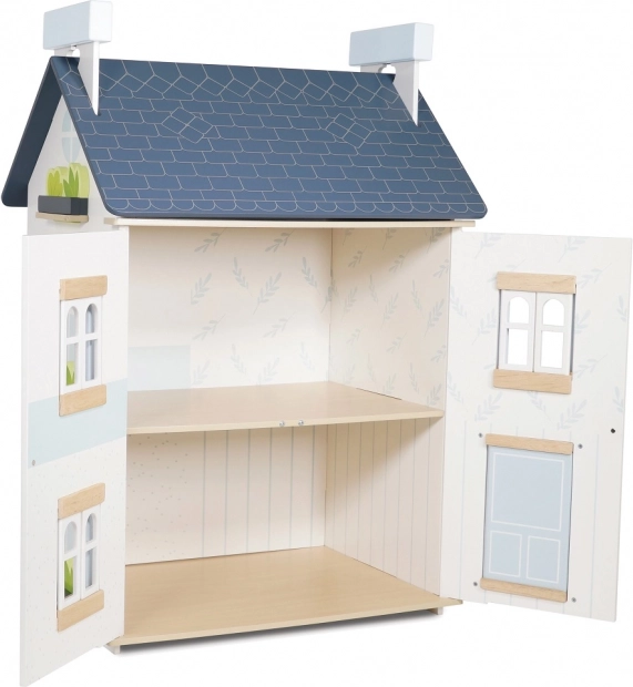 Het poppenhuis Sky van Le Toy Van is gemaakt van hoogwaardig hout met aandacht voor ethische productiepraktijken. Het is geschilderd in zacht wit en pastelblauw, waardoor het een decoratief element is voor elke kinderkamer. Openende ramen en de constructie met twee verdiepingen bieden talloze mogelijkheden voor fantasierijk spel en de ontwikkeling van coördinatie en fijne motoriek.
