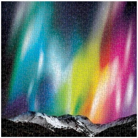 Levendige kleuren en een gedetailleerd tafereel van het noorderlicht boven de bergen maken het leggen tot een visueel meeslepende ervaring.