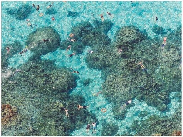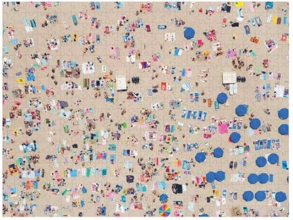 Stijlvolle dubbelzijdige puzzel geïnspireerd door de iconische luchtfoto’s van Gray Malin biedt een aantrekkelijke uitdaging én een decoratief eindresultaat. De ene zijde toont een levendig strand vanuit vogelperspectief, de andere een rustige oceaan met rotsformaties en zwemmers. Dankzij de verschillende afwerkingen (glans/mat) zie je in een oogopslag welke zijde je legt.