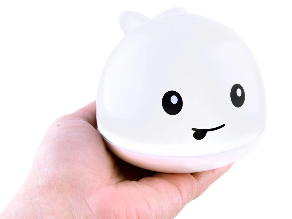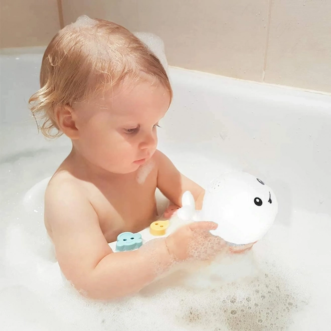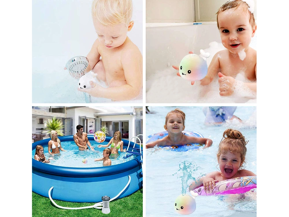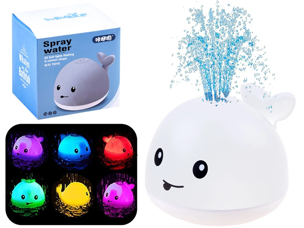 Wanneer het in water wordt ondergedompeld, activeert de walvis zichzelf en creëert een zachte waterfontein die kinderen minutenlang amuseert.