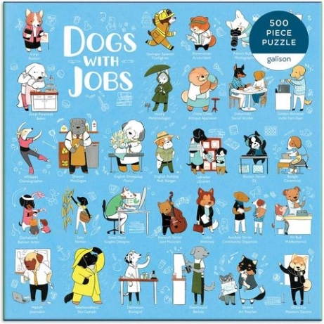 Familiepuzzel Galison Honden aan het werk, 500 stukjes. Premium kwaliteit, nauwkeurig passende stukjes, niet-giftige inkten en gerecycled papier. Afmeting 50,8 × 50,8 cm.