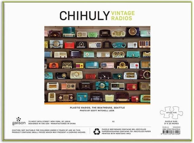 Stijlvolle puzzel met een motief van vintage draagbare radio’s, perfect voor designliefhebbers en verzamelaars. Kunstenaar Dale Chihuly liet zich inspireren door zijn levenslange collectie, wat resulteerde in een beeld vol details en kleur. Hoogwaardige druk en stevige stukjes van gerecycled papier zorgen voor een aangename puzzelervaring, elke keer weer.
