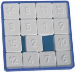 Deze schuifpuzzel is ideaal voor iedereen die van uitdagingen en logische spellen houdt. Het bevat vijftien stukken met nummers die je op hun plaats moet schuiven. Het doel is om de nummer één in de linkerbovenhoek te krijgen. Tijdens het spel mogen de stukken niet worden aangeraakt of uit de doos worden gehaald.