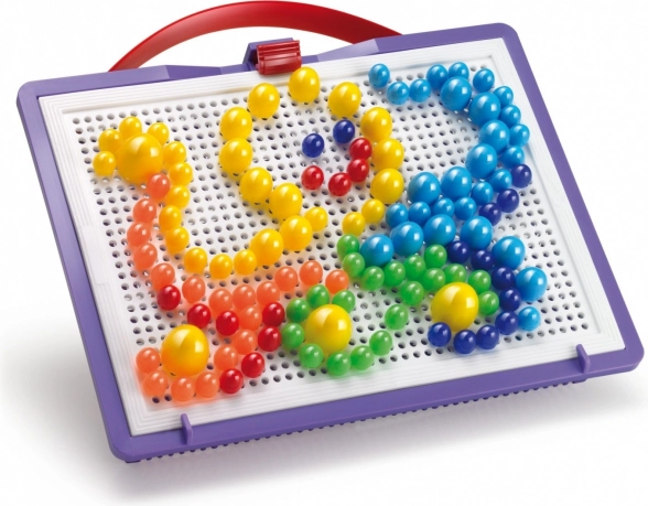 De populaire kindermozaïek van Quercetti biedt uren zinvol speelplezier. Gekleurde pinnetjes met verschillende diameters worden gemakkelijk in het duurzame geperforeerde bord gestoken, wat de oog-handcoördinatie ondersteunt, geduld traint en het visuele waarnemen van kleuren en vormen versterkt. Dankzij de slimme koffer is alles veilig opgeborgen en klaar voor onderweg.