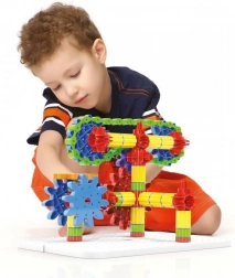 De bouwdoos Quercetti Georello Tech laat kinderen op een leuke manier de principes van mechanica ontdekken. Dankzij de stevige basisplaat kunnen kinderen horizontale en verticale tandwielsysteem samenstellen volgens de geïllustreerde handleiding of hun eigen ideeën. Enkele redenen waarom dit speelgoed de juiste keuze is: