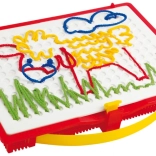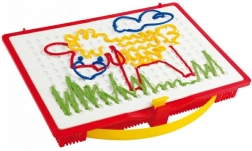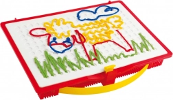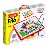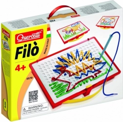 Ontdek de magie van creatief spel met de borduurset Quercetti Filò, die de verbeelding en fijne motoriek van kinderen bevordert. Met speciale pennen kunnen kinderen verschillende afbeeldingen maken door gekleurde koorden in de openingen van het speelbord te steken, wat hen vreugde en plezier brengt.