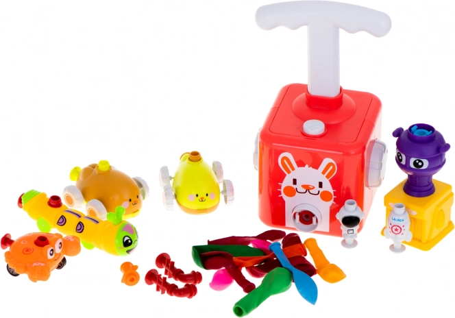 Ontdek hoe eenvoudig het is om de wereld om je heen in beweging te zetten! Plaats een ballon op het autootje of accessoire, sluit het aan op de lanceerder en met een paar pompbewegingen blaas je de ballon op. Na het indrukken van de knop schiet het autootje naar voren en begrijpen kinderen spelenderwijs de basis van natuurkunde – de kracht van lucht, druk en beweging. Het spel ontwikkelt de fijne motoriek, oog-handcoördinatie en logisch denken.