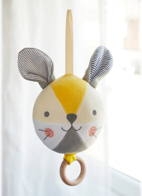 De melodische bal in de vorm van een konijntje is ontworpen om je baby te kalmeren en te vermaken. Trek zachtjes aan de houten ring en de zachte melodie “You Are My Sunshine” klinkt ongeveer twee minuten. Dankzij het superzachte oppervlak van biologisch katoen is hij ideaal om mee te knuffelen en voor de eerste tactiele ontdekkingen.