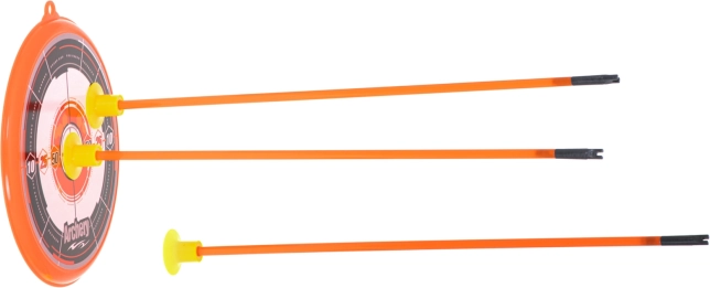 In de verpakking vind je alles voor direct speelplezier: boog, ophangbare schietschijf, koker en 3 pijlen met zuignappen.