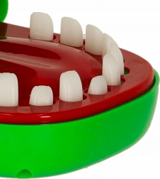Een leuk bordspel waarin spelers om de beurt de tandjes van de krokodil indrukken – maar pas op, één tand is “ziek”! Zodra je die indrukt, klapt de krokodil razendsnel zijn bek dicht. Het spel biedt spanning, actie en heel veel plezier voor het hele gezin, en is volledig veilig voor kinderen.