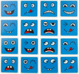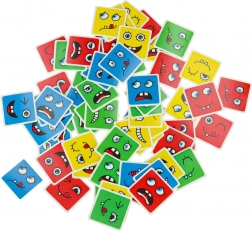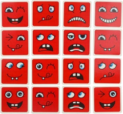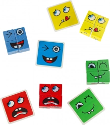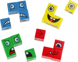 Een leuk logicaspel voor kinderen en volwassenen dat emotieherkenning, logisch denken en fijne motoriek ontwikkelt. Draai de kleurrijke houten blokjes en stel op basis van de opdrachten op de kaarten de juiste gezichtsuitdrukking samen – wie de meeste combinaties in de kortste tijd maakt, wint. Veilige houten uitvoering, 64 kaarten met gezichten en 16 blokjes in vier kleuren voor eindeloos veel plezier en leren.