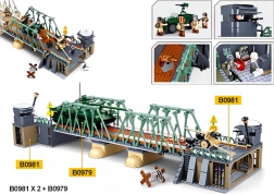 - Bouwset met brug, bunker, voertuig, minifiguren en accessoires; bouwhandleiding