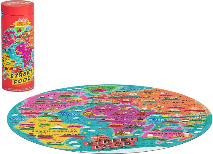 De puzzel is ontworpen voor eenvoudige samenwerking dankzij het unieke ronde formaat. Elk stukje is gemaakt van gerecycled papier, bedrukt met niet-giftige inkten, wat een hoogwaardige kwaliteit en veiligheid garandeert. Zodra de puzzel af is, kan deze dienen als inspiratie voor je eigen culinaire reizen.