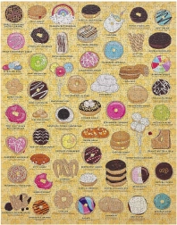 Geweldig cadeau voor elke donutliefhebber: een puzzel met 1000 stukjes die 55 heerlijke soorten toont, van Boston Cream tot Vanilla Sprinkle. Maak je eigen kunstwerk voor het interieur.