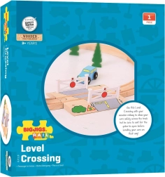 Gemaakt van hoogwaardige en verantwoord verkregen natuurlijke materialen ondersteunt deze set de verbeeldingskracht, behendigheid en coördinatie van kinderen. De spoorwegovergang heeft neerklapbare slagbomen, die perfect passen bij de treinbanen van Bigjigs Rail, maar hij is ook te combineren met alle andere houten treinbanen op de markt.