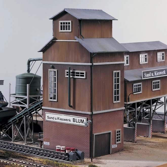De sorteertoren van de zandgroeve E. Blum uit de PIKO Authentic Edition-serie maakt deel uit van een compleet bouwpakkettenconcept voor dit terrein, maar kan ook zelfstandig worden gebruikt. Aan de voet is hij uitgerust met een kleine laadhelling en hij blinkt uit door talrijke details, zoals dakgoten, verlichting en natuurlijk ook realistische details van de technische uitrusting, diverse ontluchtingen en appendages. De deurtjes van het gebouw zijn functioneel en kunnen worden geopend. Het gebouw kan individueel worden uitgebreid met bouwpakketten van een laadplatform, een silo met transporteur, een spoorwegkraan en een verkoopkantoor. Het bouwpakket bevat ook een basisplaat voor de uitwerking van de directe omgeving, met name voorbereid op uitbreiding met een silo met transporteur. Andere objecten die op de afbeelding te zien zijn (auto’s, figuren enz.) maken geen deel uit van de levering. De kunststof miniaturen van PIKO zijn bij uitstek geschikt voor het ontwerpen van realistische modelbanen en diorama’s. Dankzij de verfijnde kleurstelling, in deze reeks bovendien inclusief patina, benaderen ze hun voorbeelden met maximale nauwkeurigheid, die in sommige gevallen nog individueel kan worden versterkt met de meegeleverde decals. De gedetailleerde en precieze kunststof gietdelen van de afzonderlijke componenten passen naadloos in elkaar en dankzij de gedetailleerde handleiding die bij elk bouwpakket is inbegrepen, is de montage eenvoudig, zodat u uw kostbare tijd kunt besteden aan het unieke ontwerp van het landschap en de plaatsing van afzonderlijke elementen in de scène. Bij de accessoires die voor deze modellen worden aangeboden, vindt u diverse aanvullingen, verbruiksmaterialen en gidsen met instructies en waardevolle tips voor het ontwerpen van modelbanen. Gemaakt in Duitsland, in overeenstemming met de strengste kwaliteitsnormen. Belangrijkste kenmerken: schaal H0 (1:87) mogelijkheid tot uitbreiding met extra bouwpakketten realistische kleuren met patina eenvoudige montage gemaakt in Duitsland Documentatie: montagehandleiding modelnr. 61124