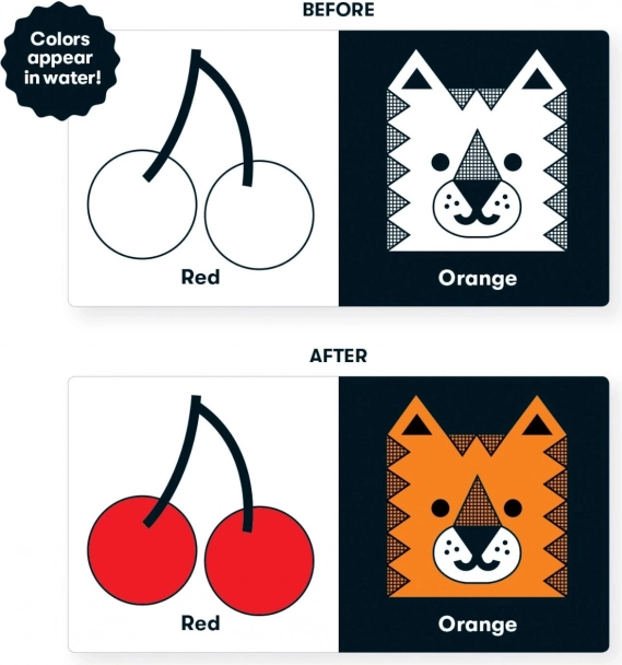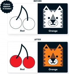 Het magische badleesboek van Mudpuppy verandert elk badmoment in een vrolijke ontdekking. Dompel het boekje in water en de zwart-witillustraties veranderen in levendig gekleurde afbeeldingen. Zo leren kinderen spelenderwijs kleuren en ervaren ze de veranderingen die water teweegbrengt.
