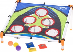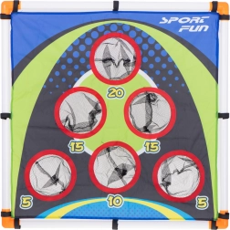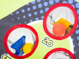 Het spel met doelwit is ideaal voor buitenplezier in het park of in de tuin, evenals voor binnen spelen thuis. Kinderen kunnen achter een gemarkeerde lijn staan en gekleurde ballen of zakjes naar doelen met verschillende punten gooien, wat niet alleen leuk is, maar ook precisie en concentratie oefent.