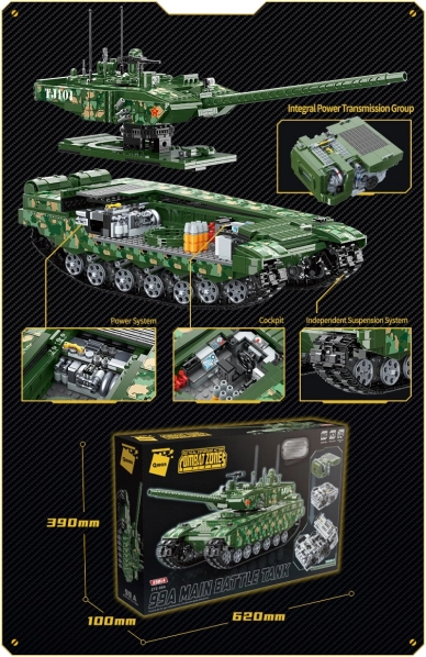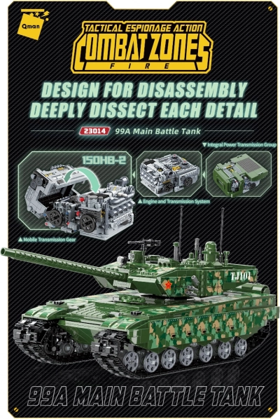 Bouw de iconische Chinese tank 99A uit 2.743 stenen en ontdek zijn geheimen dankzij een gemakkelijk toegankelijke binnenkant, een volledig draaibare koepel en een onafhankelijk geveerd onderstel. Uniek is het grote model van de krachtbron 150HB-2, waarmee je de constructiedetails kunt bestuderen. Qman bouwstenen zijn compatibel met andere merken en gemaakt van duurzaam ABS‑kunststof.