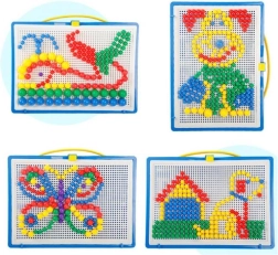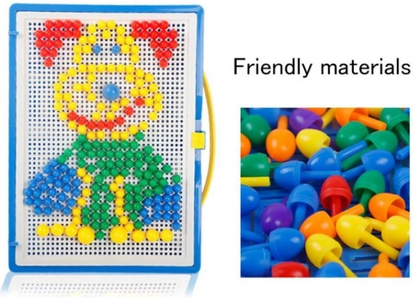 Het maken van figuren en patronen met behulp van gekleurde paddenstoeltjes bevordert creativiteit en verbetert de fijne motoriek van kinderen.