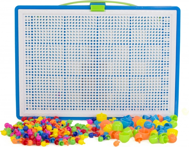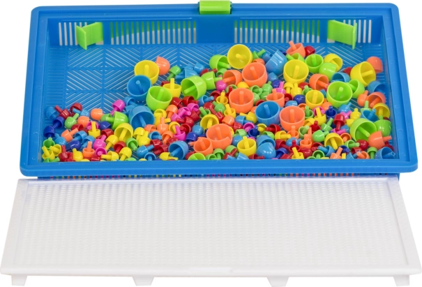 Dit speelgoed is geliefd bij generaties kinderen en wordt nostalgisch herinnerd door volwassenen. Eenvoudige constructie bestaande uit gekleurde plastic paddenstoeltjes in verschillende groottes en een geperforeerde basisplaat voor het insteken ervan. Alles is opgeborgen in een compacte koffer, zodat uw kind zijn favoriete speelgoed overal mee naartoe kan nemen.