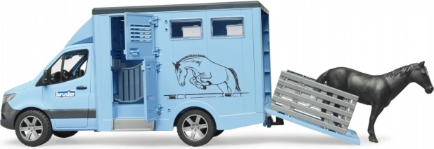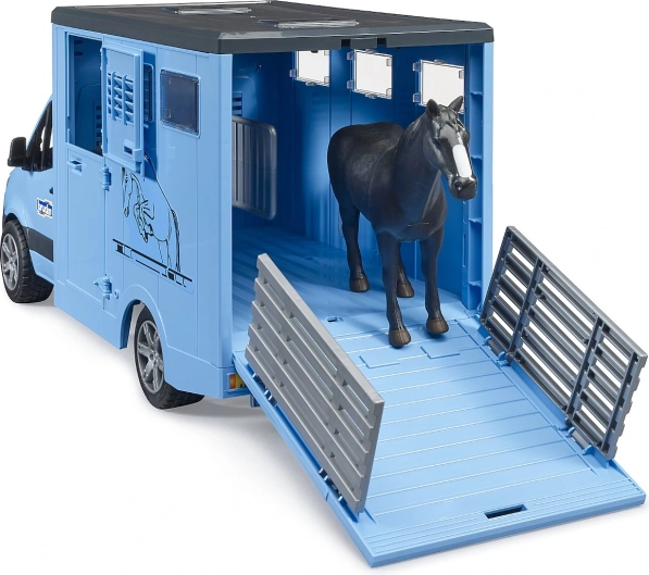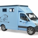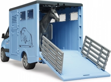 Deze gedetailleerde paardenvervoerder is gebaseerd op de populaire bedrijfswagen MERCEDES‑BENZ Sprinter. Kinderen zullen genieten van de functionele cabine met te openen deuren, de realistische opbouw voor veilig transport en de vele speelmogelijkheden – van laden via de helling tot een tussenschot dat is aangepast voor twee paarden.