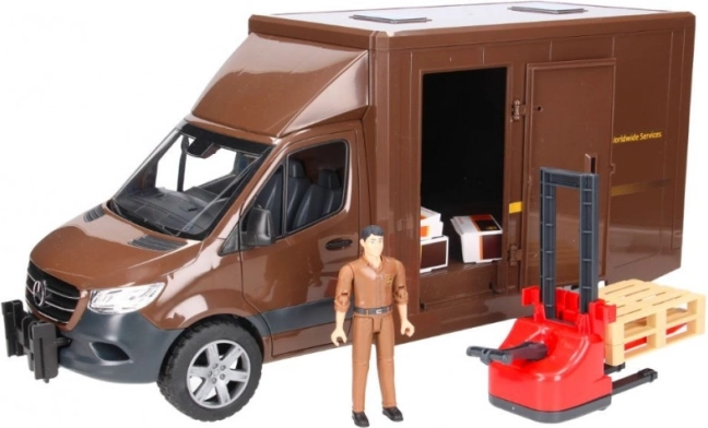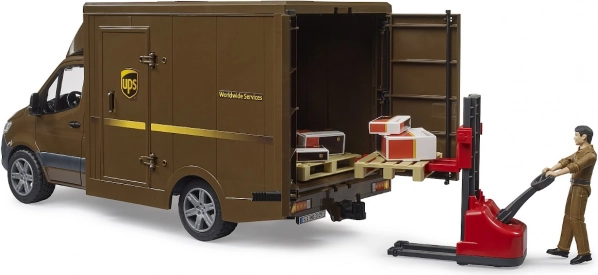 De UPS Bruder MB Sprinter bestelwagen met figuur en accessoires biedt eindeloze speelmogelijkheden dankzij het doordachte design en de functionaliteit. Het model op schaal 1:16 is gemaakt van hoogwaardige materialen en biedt een realistische speelervaring.