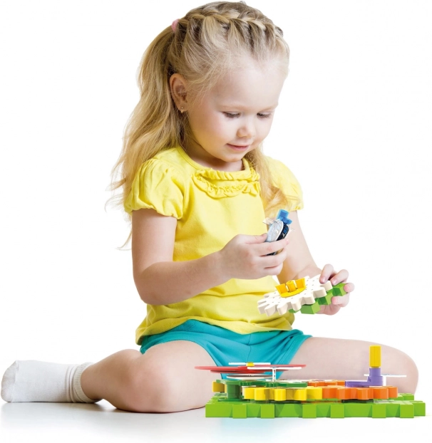 De Quercetti Tuin in Beweging bouwset brengt spelenderwijs leren. Kinderen koppelen tandwielen, bouwen eigen mechanismen en ontdekken principes van krachtoverdracht. Na een draai aan de zwengel komt de bonte wereld in beweging – bloemen openen, vlinders wapperen en kevertjes komen tot leven.