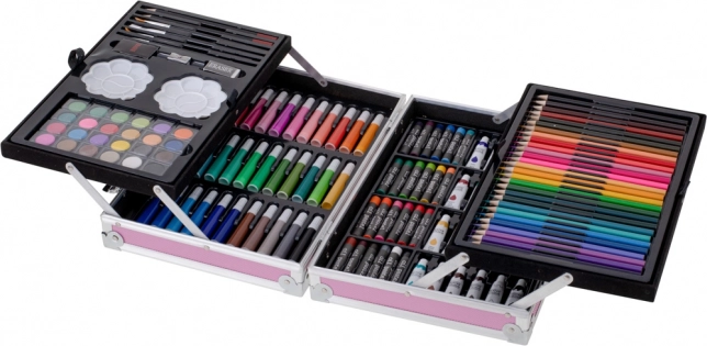 Set beeldende kunstbenodigdheden in koffer, 145 delig – Roze