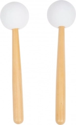 Twee stokjes met witte, bolvormige koppen zorgen voor een zachte, zuivere toon die vriendelijk is voor kinderoren en langer spelen zonder lawaai ondersteunt.