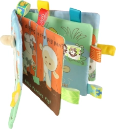 Het boek bestaat uit vier stoffen bladen met een kort verhaal in het Engels, wat helpt om kinderen al op jonge leeftijd kennis te laten maken met een vreemde taal.