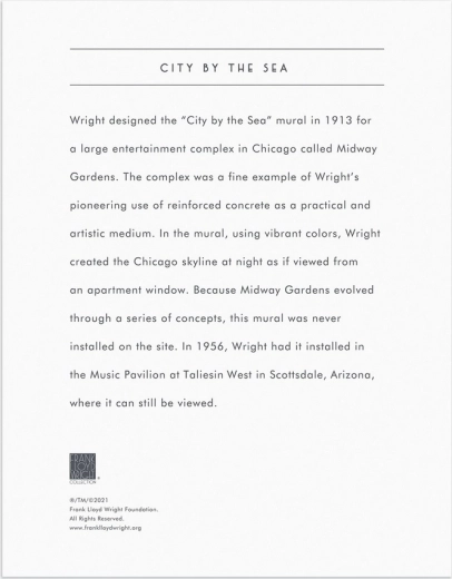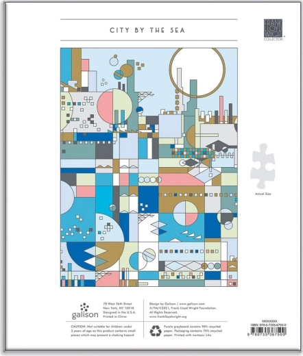 Deze prachtige puzzel brengt de iconische kunst van Frank Lloyd Wright in huis. De muurschildering “City by the Sea” werd in 1913 ontworpen voor een amusementscomplex in Chicago en geldt als een baanbrekend voorbeeld van het gebruik van gewapend beton in kunst. De puzzel toont dit kunstwerk door het raam van een appartement en bevat details met foliedruk, wat zorgt voor een nieuwe blik op dit iconische werk.