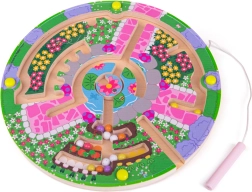 Dit ronde houten doolhof met kleurrijke tuingrafiek biedt kinderen intuïtief en boeiend spel. Het meegeleverde magnetische pennetje leidt de kogeltjes langs paadjes en obstakels, wat op natuurlijke wijze concentratie, bewegingsprecisie en logisch denken stimuleert.