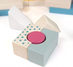 Zachte en meer uitgesproken tinten en eenvoudige patronen ondersteunen het herkennen van kleuren en vormen, de ontwikkeling van logisch denken en ruimtelijk inzicht bij het bouwen van de eerste constructies.