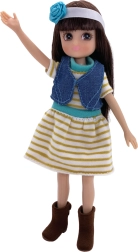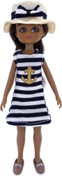 Pop met nautische jurk en bijpassende accessoires, klaar voor zomerse avonturen.