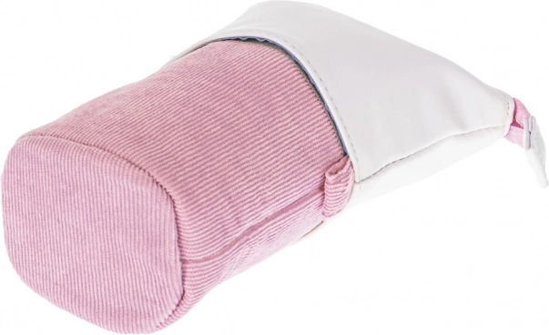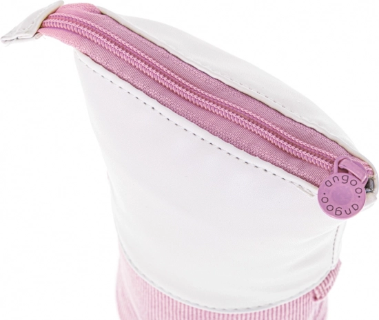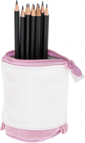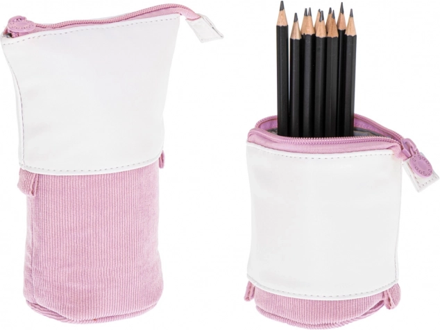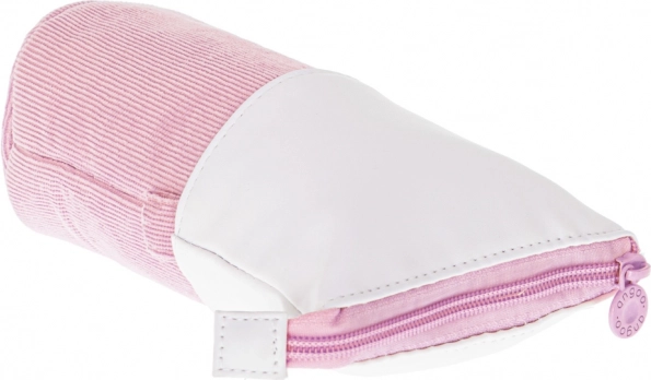 Lichte en ruimtebesparende etui met een fijne textielstructuur in roze-wit, geschikt voor zowel school als kantoor.