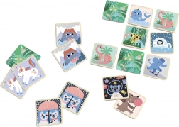 Duik in een wereld waar een vos piano speelt en een hond een lolly vasthoudt met het unieke memoryspel van Vilac. Deze stevige houten stukken, ontworpen door de uitzonderlijke illustratrice Michelle Carlslund, zijn niet alleen esthetisch plezierig, maar ook perfect aangepast voor kleine handjes. Kinderen zullen urenlang plezier beleven dat de nadruk legt op geheugenontwikkeling en fijne motoriek.