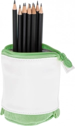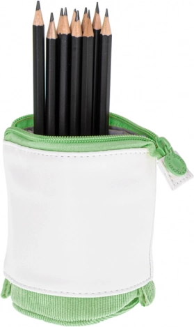 Het duurzame textielmateriaal garandeert een lange levensduur en de rits beschermt de inhoud tegen uitvallen. Het minimalistische groen-witte design zal zowel kinderen als volwassenen bevallen en past perfect bij moderne school- en kantoorbenodigdheden.