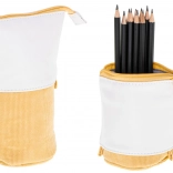 De stevige textielstof weerstaat dagelijks gebruik en biedt plek voor pennen, kleurpotloden, stiften en een kleine liniaal zonder onnodige ruimte in te nemen.