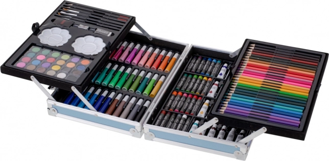 Universele kunstset in een praktische koffer met alles voor kleine en grote kunstenaars. Bevat een brede selectie kleuren en hulpmiddelen voor tekenen en schilderen – van stiften en kleurpotloden tot aquarellen, verftubes en oliepastels. Compacte blauwe koffer met stevige sluitingen houdt alles overzichtelijk op zijn plaats en is ideaal voor thuis, school en onderweg. 145 delen voor onbeperkte creativiteit en fantasie.