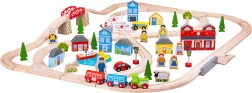 Een complete stads- en dorpsscène met brug, overgang, gebouwen, bomen en figuurtjes biedt kinderen volop inspiratie om te spelen en hun fantasie te ontwikkelen.