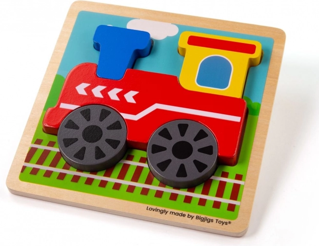 Ideaal eerste houten puzzel voor de kleintjes. Grote stukken die de trein vormen helpen bij het ontwikkelen van fijne motoriek en logisch denken.