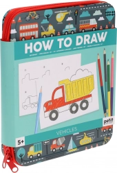 Deze draagbare creatieve set stimuleert fantasie, fijne motoriek en geduld. Dankzij de overzichtelijke handleiding leren kinderen eenvoudig en met plezier verschillende voertuigen tekenen. De metalen etui met rits houdt alle materialen bij elkaar en is ideaal voor uitstapjes, in de auto en op vakantie.
