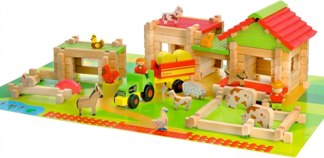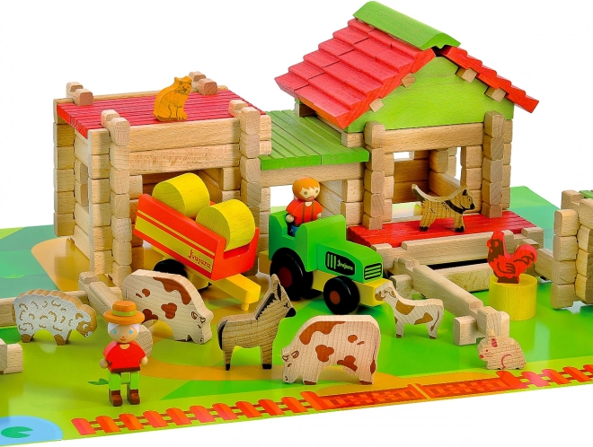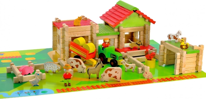 Deze bouwset stimuleert de creativiteit van kinderen en laat hen hun eigen boerderij bouwen met een rood dak, een groene tractor en veel dieren.