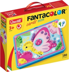 Pinnenmozaïek met een opbergmand en 4 voorbedrukte afbeeldingskaarten om de pinnetjes in te steken. De mozaïek stimuleert de fijne motoriek, hand-oogcoördinatie en creatief denken. Bestaat uit 4 voorbedrukte, geperforeerde kaarten, 180 gekleurde pinnetjes, een prikbord, een klemframe en een opbergmandje. Aanbevolen voor kinderen vanaf 3 jaar. Inhoud van de verpakking: 1 opbergmandje, 1 prikbord met gaten voor pinnetjes, 1 klemframe, 4 geperforeerde kaarten met afbeeldingen, 180 gekleurde pinnetjes in 2 vormen en 6 kleuren. Belangrijkste eigenschappen: ondersteunt de fijne motoriek, hand-oogcoördinatie, creatief denken.