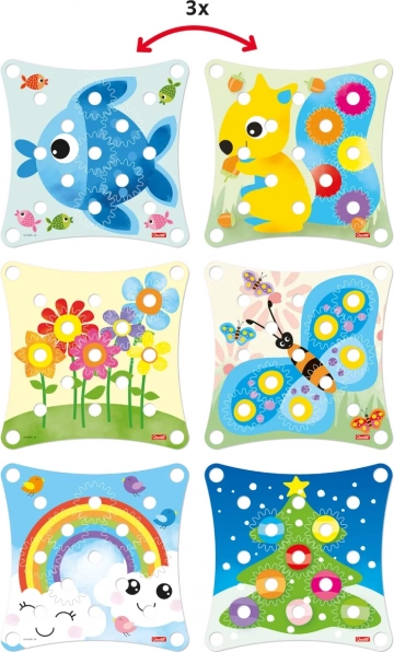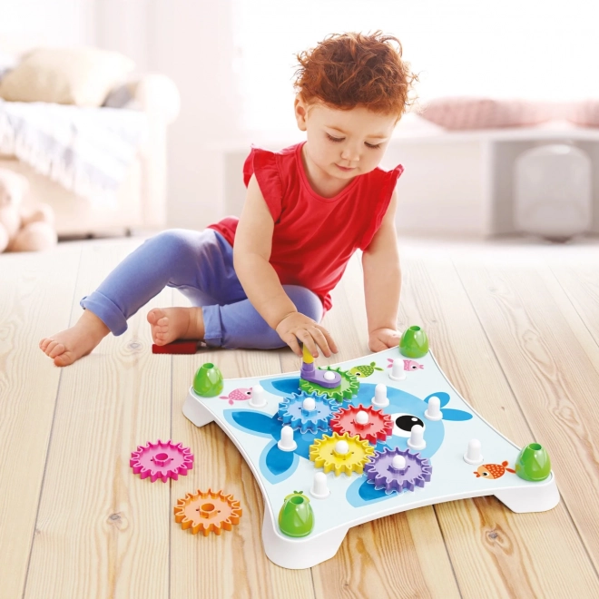 Rangschik de kaart, plaats de tandwielen, draai aan de slinger en kijk naar de indrukwekkende kettingreactie die alle kinderen zal verrassen en verheugen. Het kind leert de basisprincipes van mechanica en beleeft daarbij veel plezier. Onbreekbaar en veilig. Gemaakt van kunststof van topkwaliteit. Inhoud van de verpakking: 1 witte basis, 1 slinger, 7 gekleurde tandwielen, 3 dubbelzijdig geïllustreerde kaarten. Belangrijkste kenmerken: ontwikkelt fijne motoriek, creativiteit, fantasie en logisch-combinatorisch denken; de verpakking bevat 13 onderdelen; voor kinderen vanaf 2 jaar. Afmetingen verpakking: 33 × 32,5 × 7 cm. Leeftijd: 2+. Materiaal: kunststof