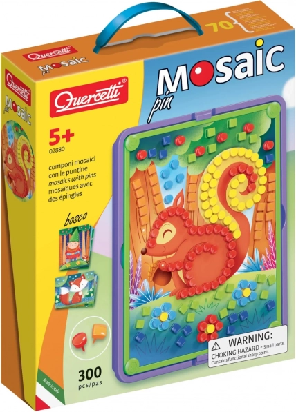 Ontdek creatieve pret met de mozaïek Quercetti Pin Bosco, die kinderen helpt hun fijne motoriek, oog-handcoördinatie en creatief denken te ontwikkelen. De set bevat 8 voorgedrukte kaarten met bosmotieven, 300 gekleurde pinnetjes in 2 vormen en 6 kleuren, een stevig prikbord, een handgreepframe en een praktische opbergmand voor gemakkelijk opruimen.