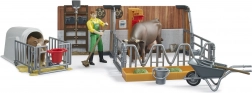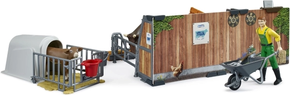 De stal voor vee is het ideale speelgoed voor kinderen die het leven op de boerderij willen ervaren. De set bevat figuren van een koe en een kalf, een beweegbare boerenfiguur, een voederbak, een trog en alle benodigde gereedschappen voor de verzorging van dieren.